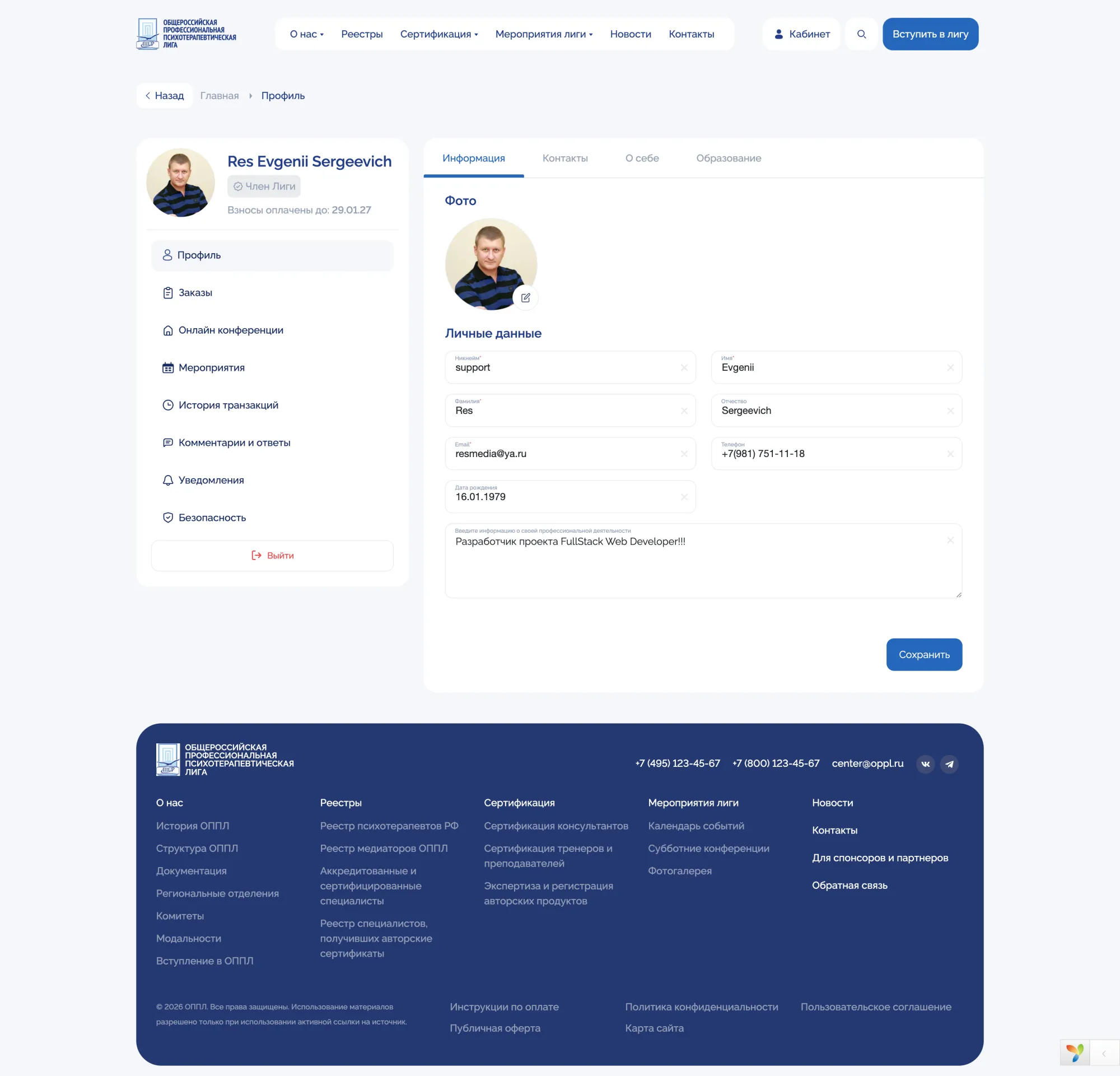 За 60 дней мной был спроектирован, разработан и запущен в рабочее состояние масштабный веб-проект для общероссийской организации — сайт ОППЛ. Проект реализован полностью самостоятельно, от архитектуры и серверной части до пользовательских интерфейсов и административной панели.