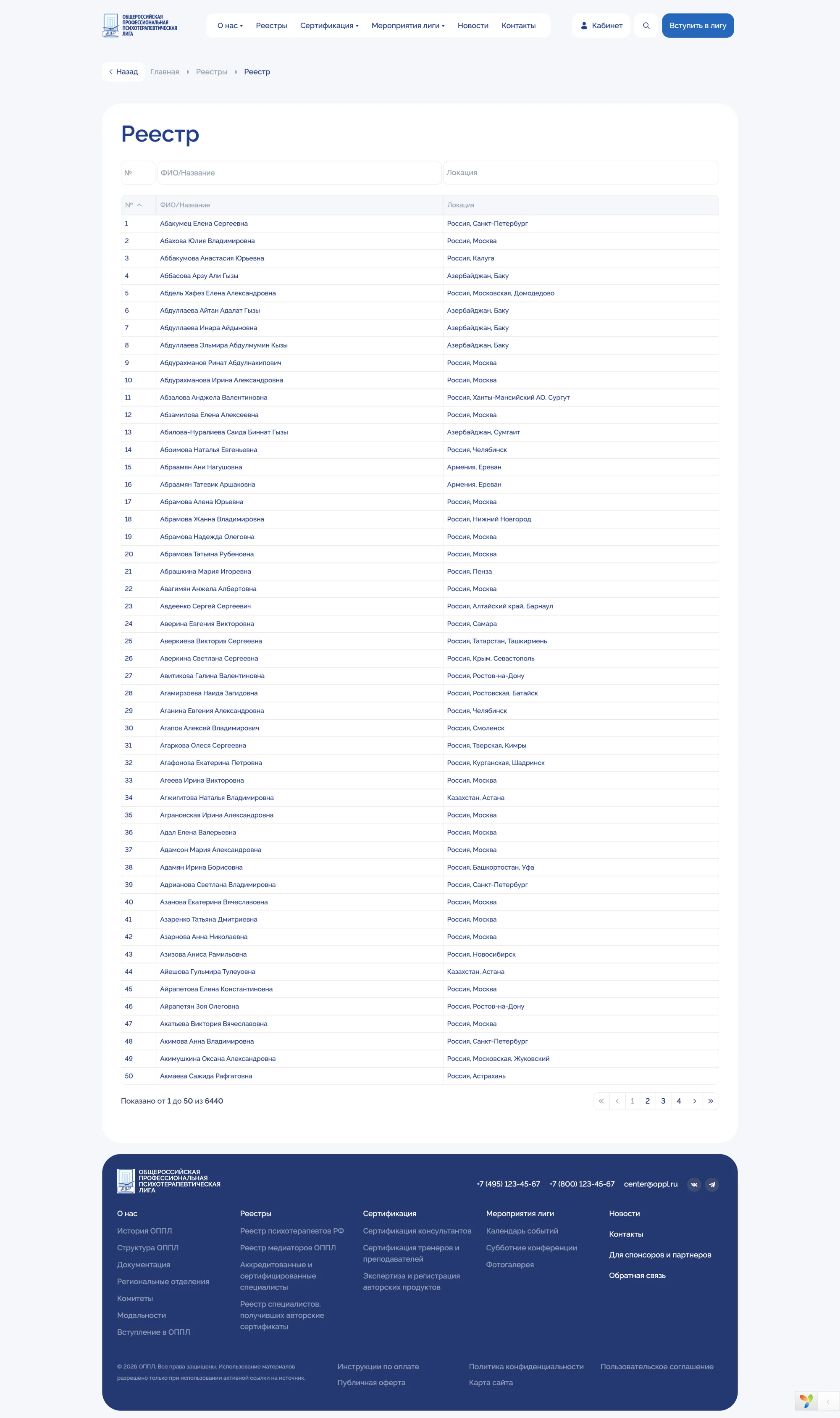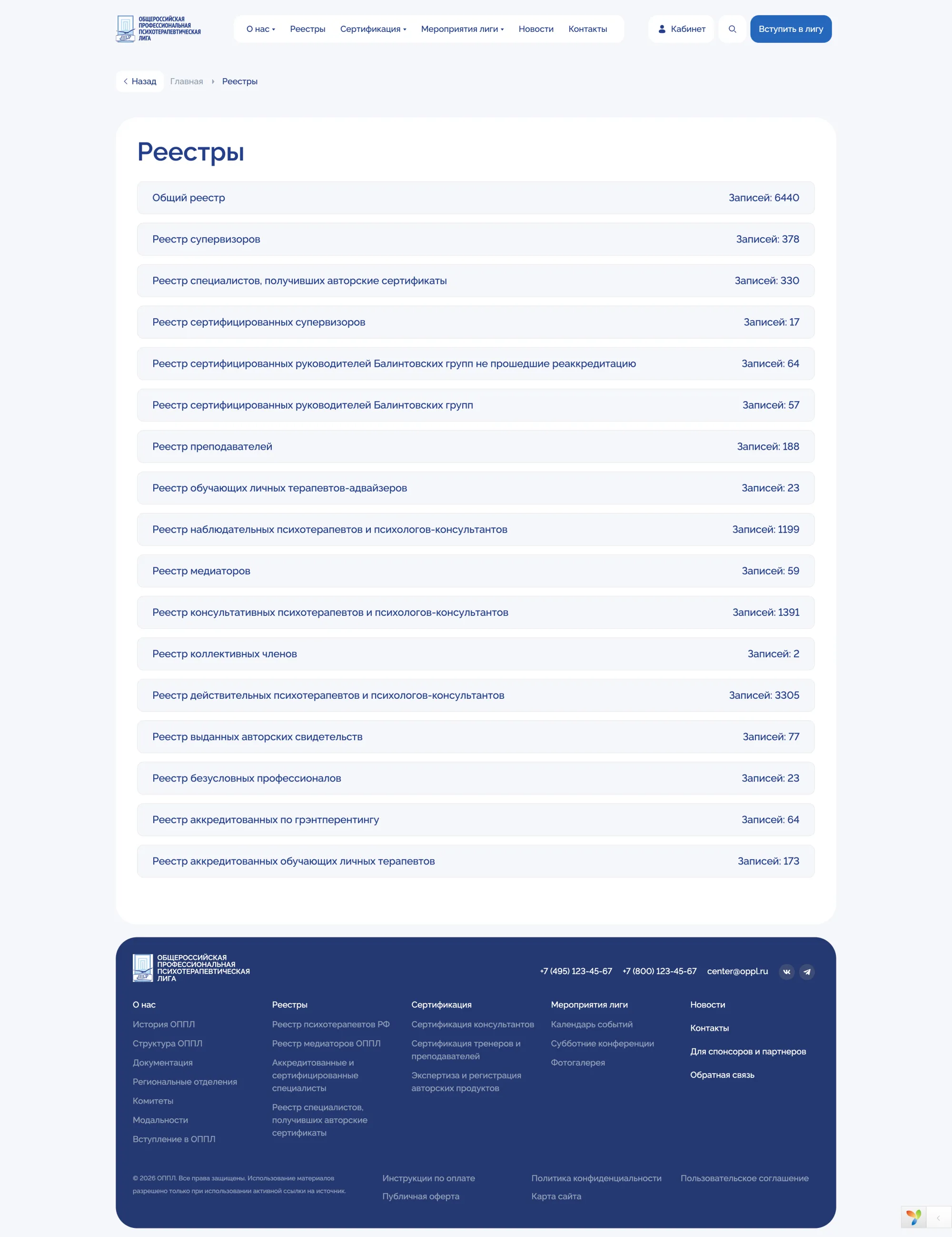 Отдельные публичные страницы для каждого элемента реестра.