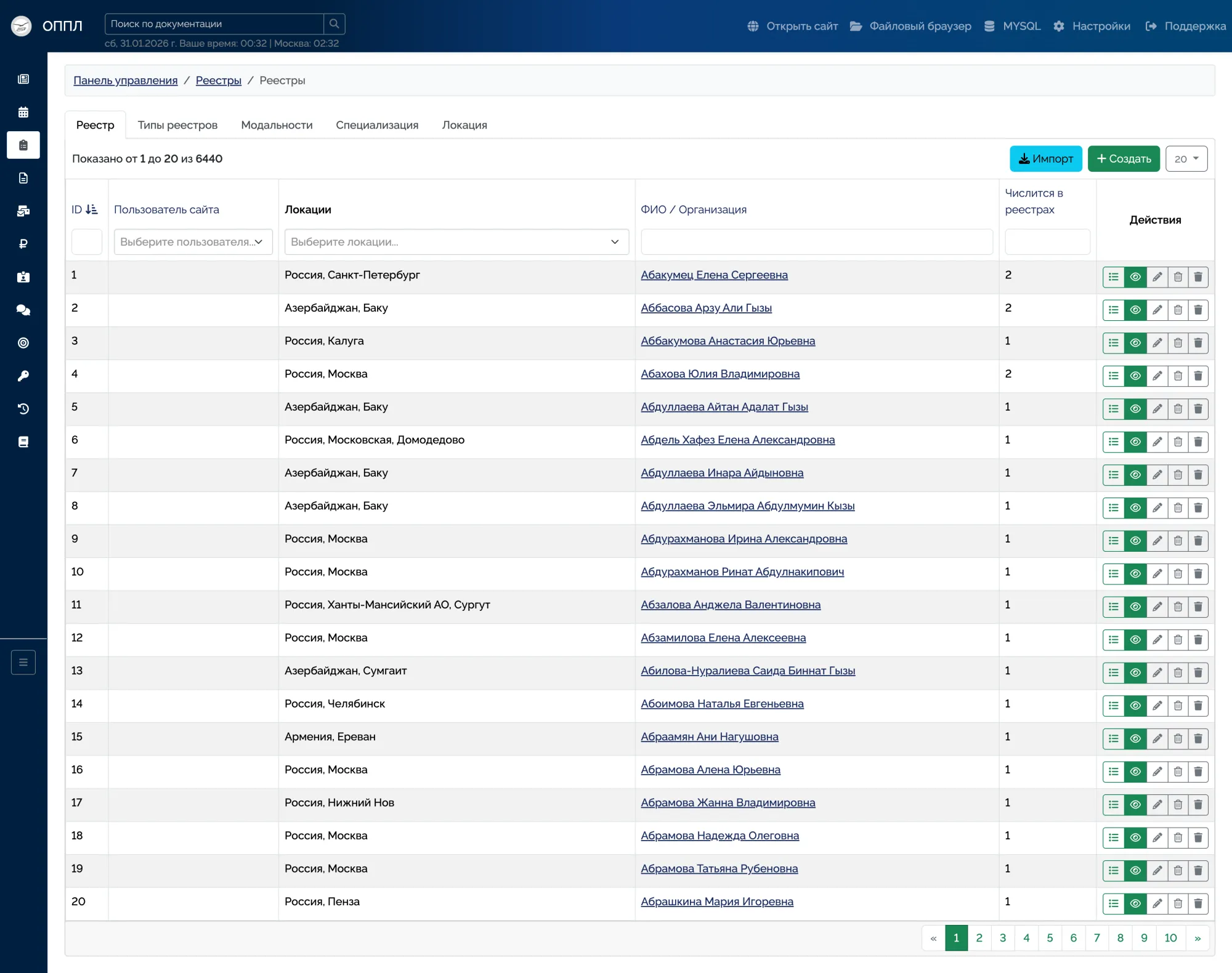 Реализована многоуровневая система реестров с типами, модальностями, специализациями и локациями.